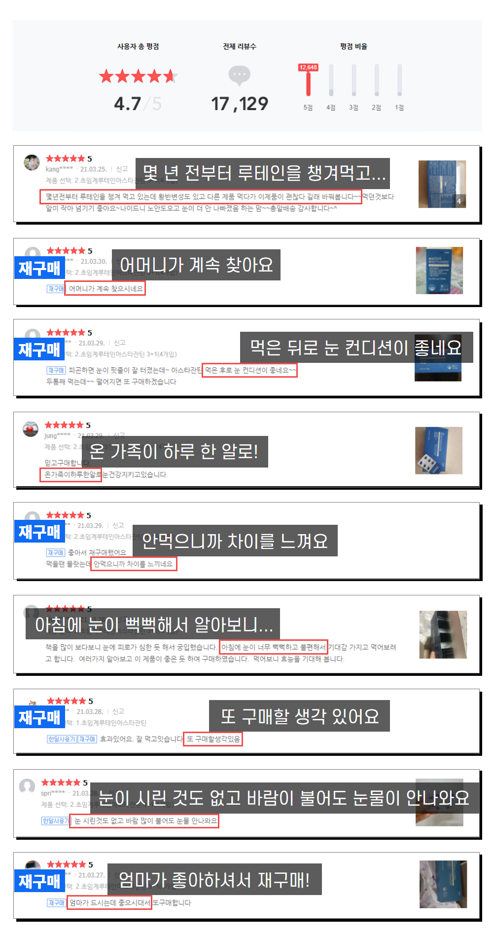 * 뉴트리코어 루테인아스타잔틴 네이버 공식스토어 실제 리뷰를 발췌하여 정리했습니다.