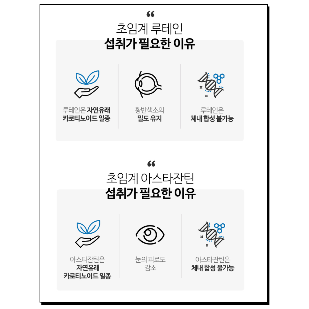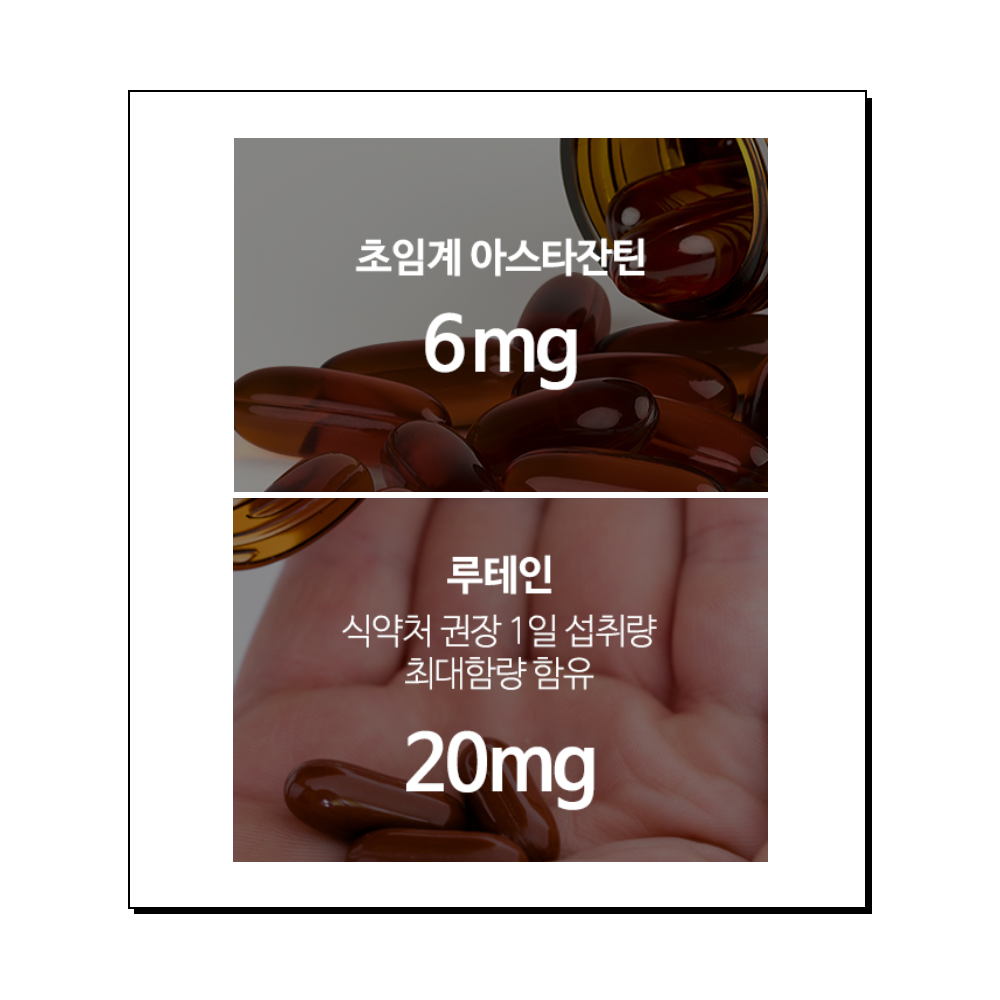 (* 식약처 권장 1일 섭취량: 루테인 20mg / 아스타잔틴 4mg)