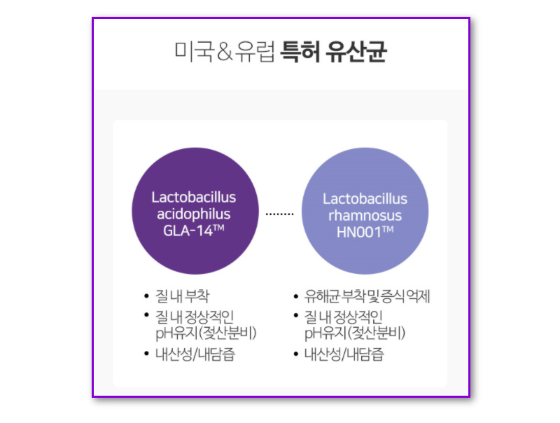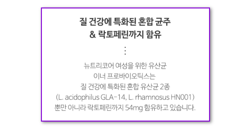 🏷 여성 질 건강 맞춤 배합 : 질 건강 특화 혼합 균주 2종 + 락토페린 54mg 함유✅