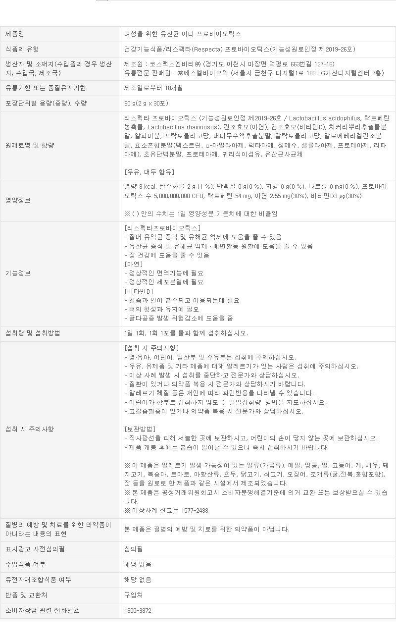 뉴트리코어 이너 프로바이오틱스 (리스펙타 질유산균) 공구