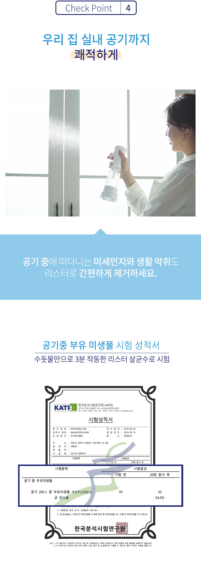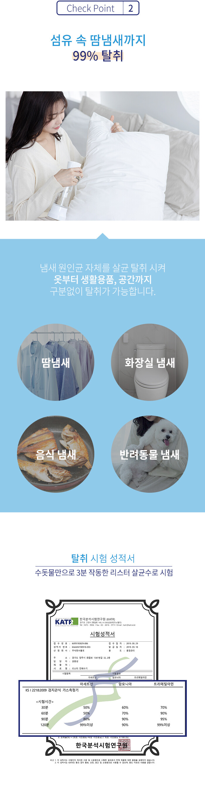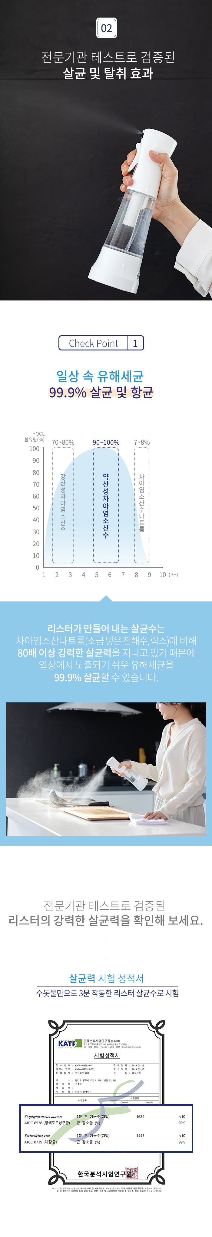 강력한 탈취효과, 인정받은 안전성, 강력한 살균력에 무향 무색