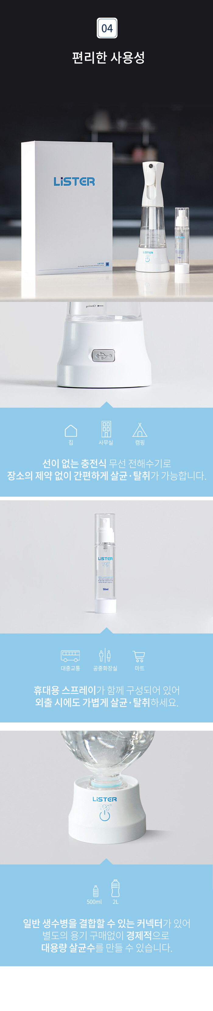 ⭐️일반 생수병 결합, 커넥터로 별도 용기구매없이 경제적으로 대용량 살균수를 완성