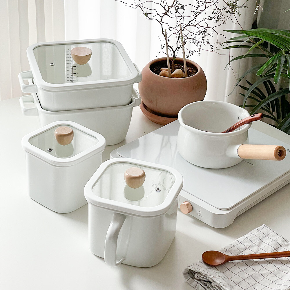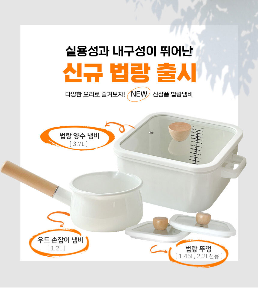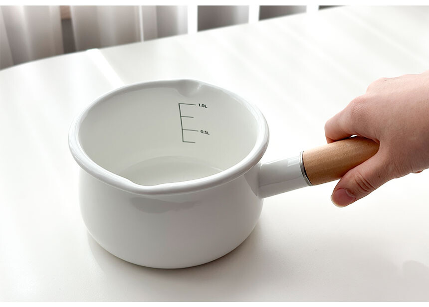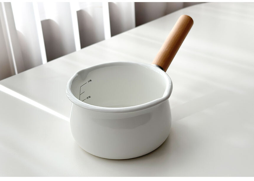 법랑 우드손잡이 냄비 1.2 (화이트)