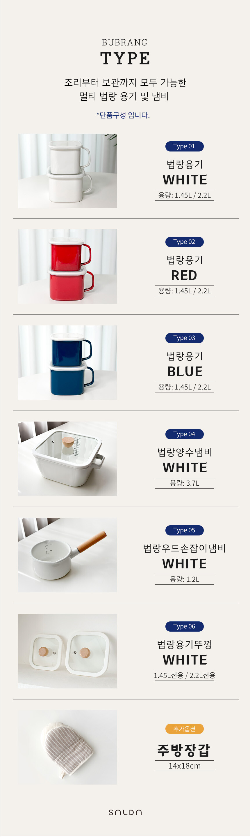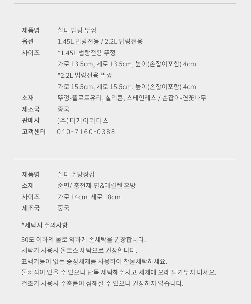 살다 법랑 캐니스터 1.45L, 2.2.L 유리뚜껑, 접이식 바스켓, 장갑