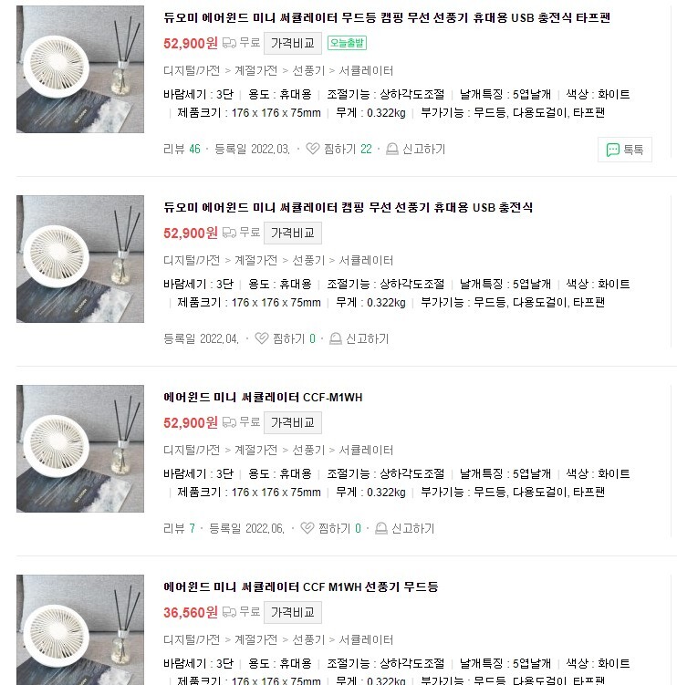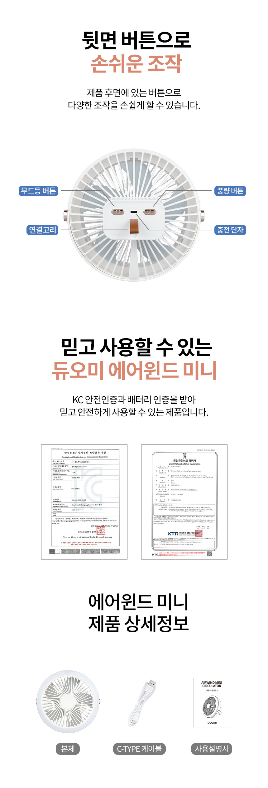 듀오미 에어윈드 미니 써큘레이터 무드등