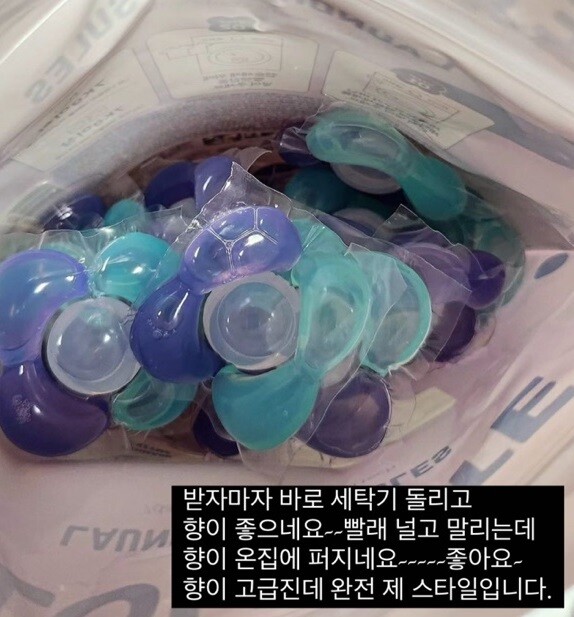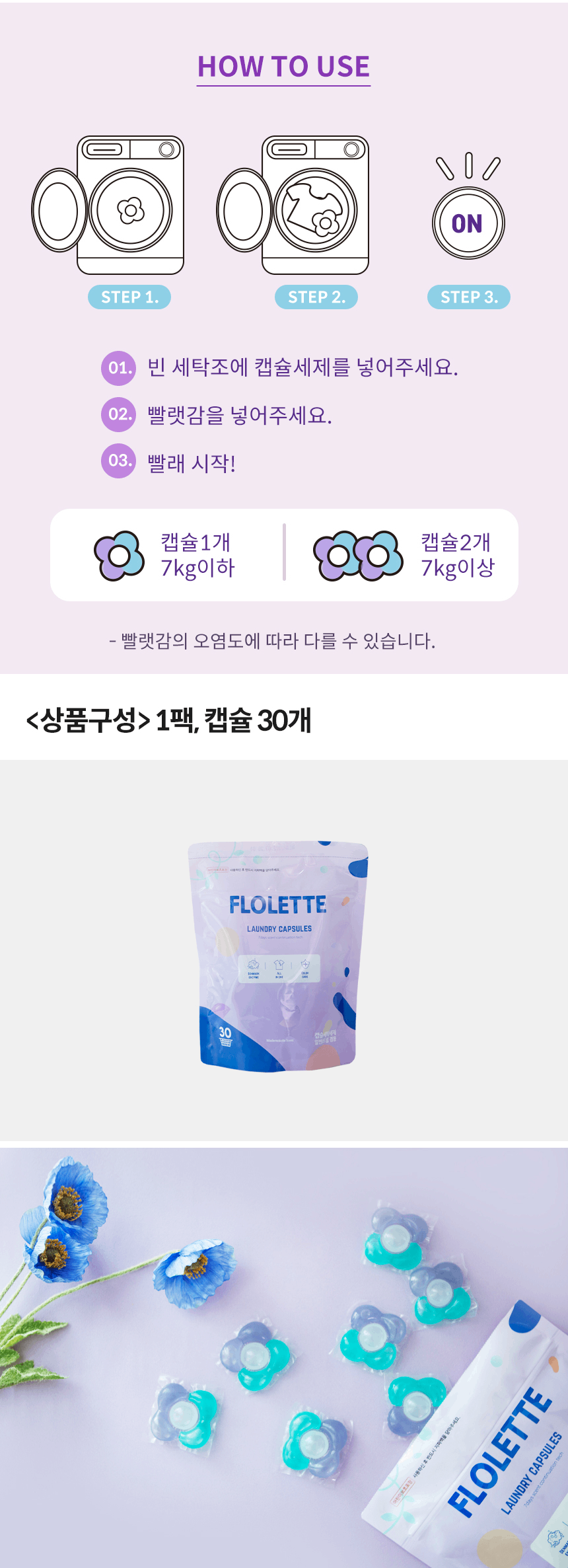 빨래 약 7KG당 캡슐하나로 세탁이 가능한 고기능성 세제이지만, 향을 좀더 많이 느끼고 싶으면 캡슐 2개를 넣어서 사용해주세요.