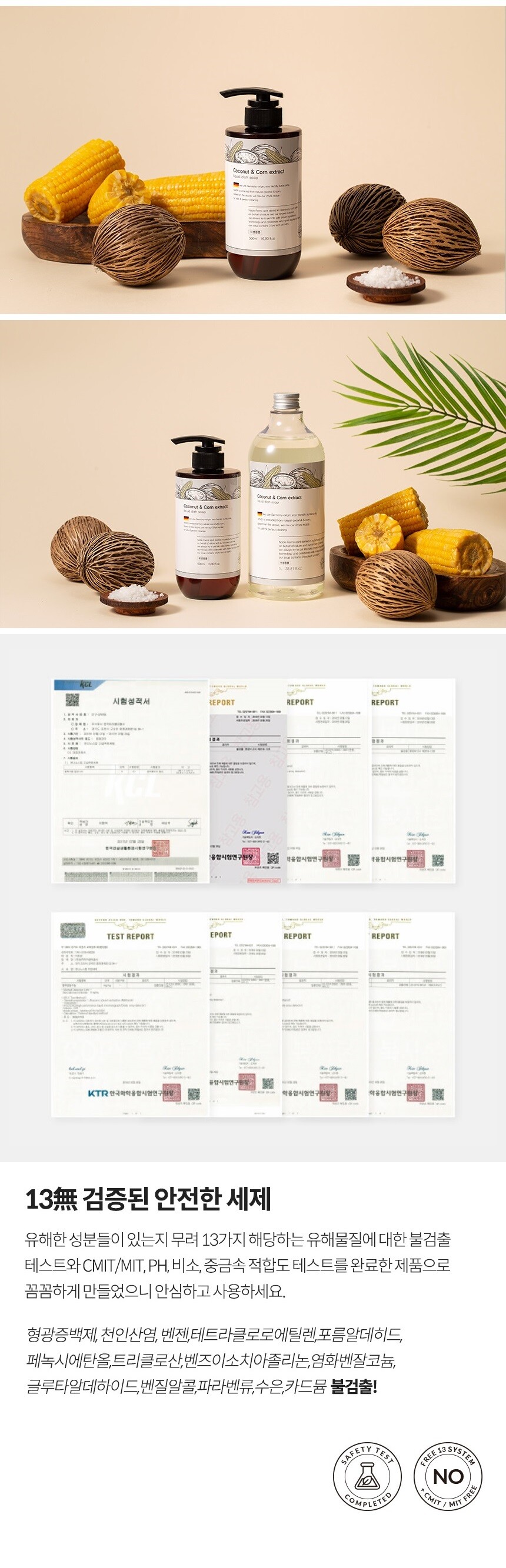 벤젠, 포름알데히드, 트리클로산 등 13가지 유해 물질에 대한 불검출 테스트와