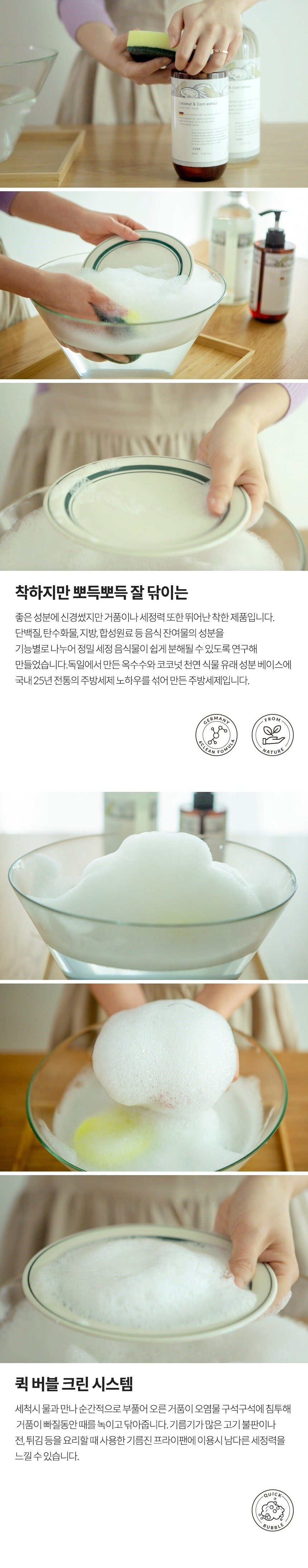 - 6가지 특수 성분이 기름때를 금방 녹여주고 오염물 구석구석 파고드는 강력한 순간버블이 음식물을 깨끗히 세척해줍니다.