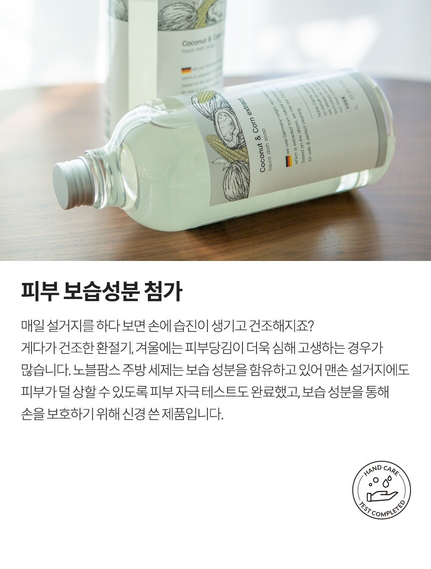노블팜스 주방 세제는 맨손 설거지에도 피부가 덜 상할 수 있도록 신경써 만든 제품이죠.