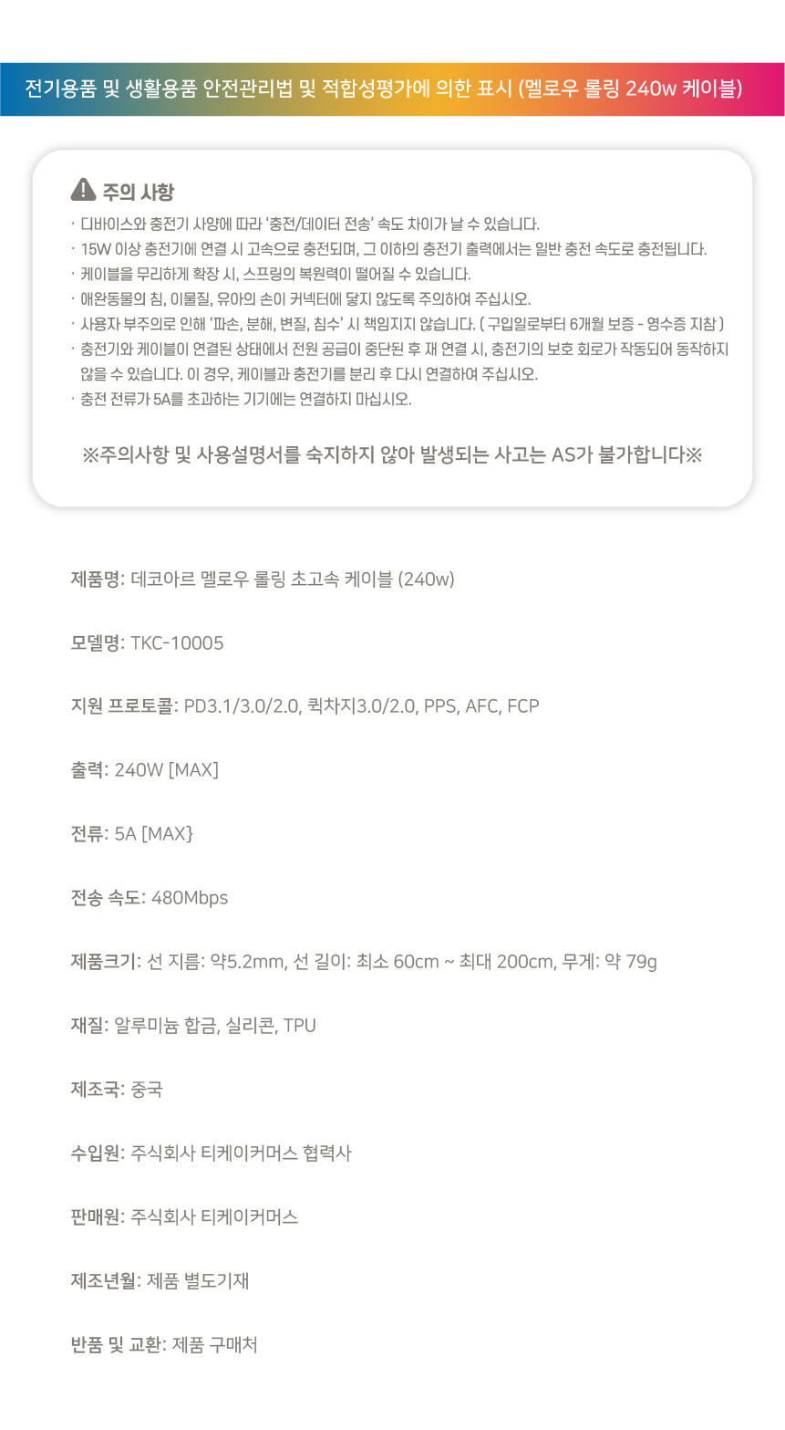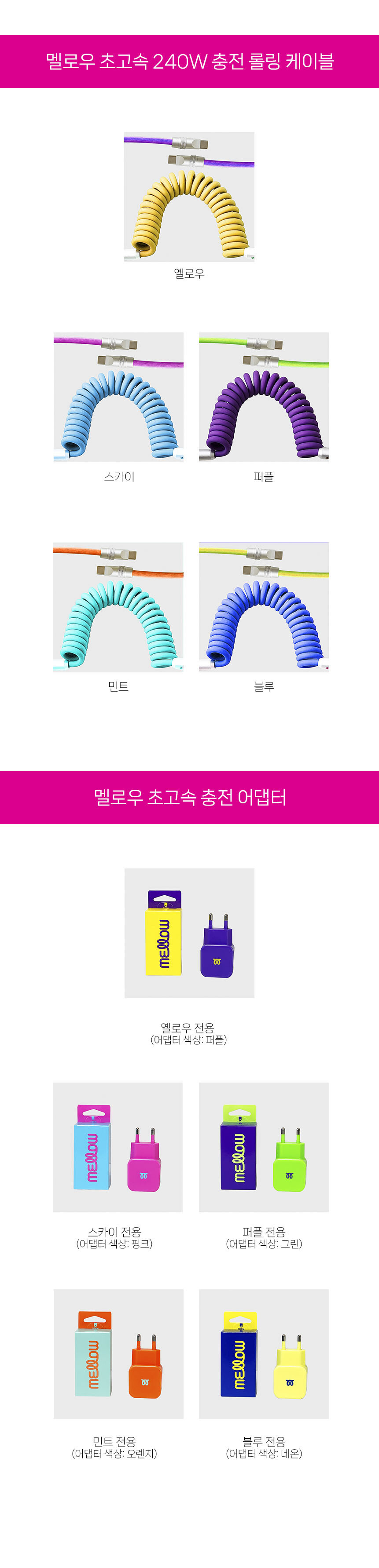 컬러 초고속 충전케이블/어댑터/멀티탭 공구