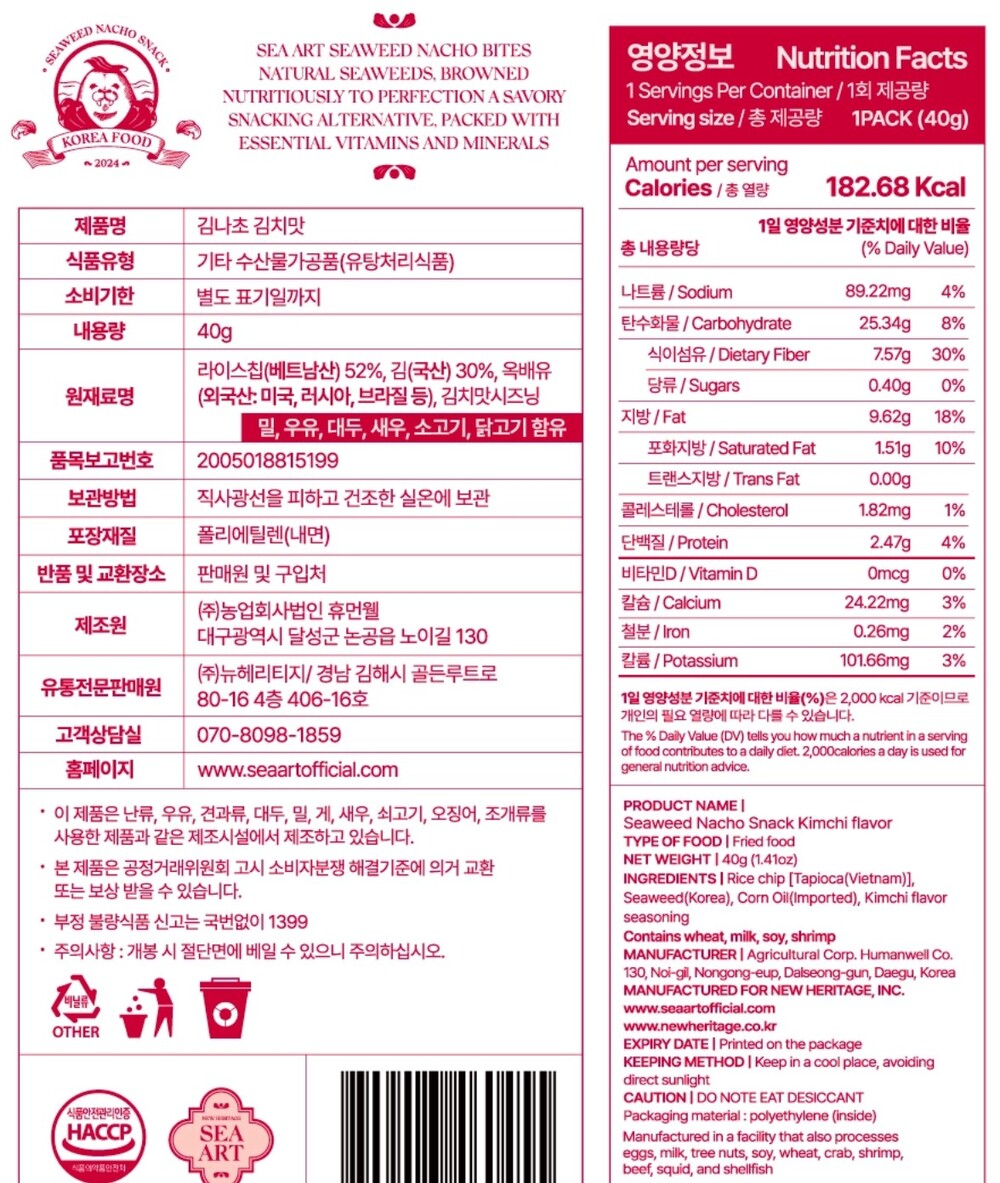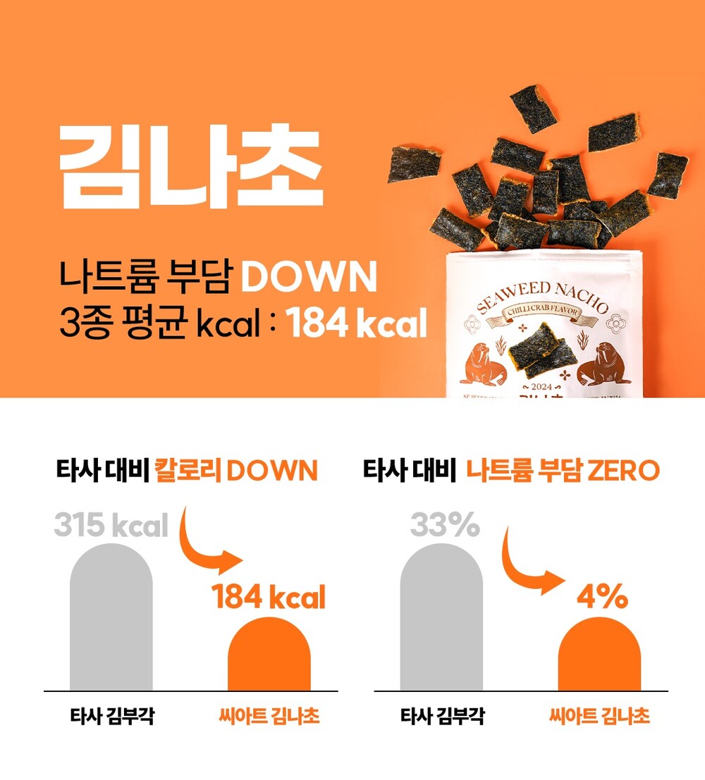 * 김 함유량 UP (타사 : 8~9% / 김나초 : 30%)