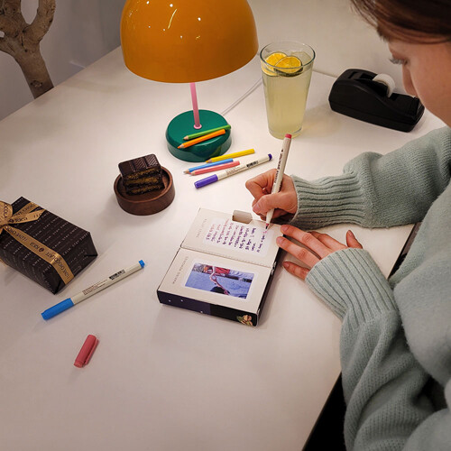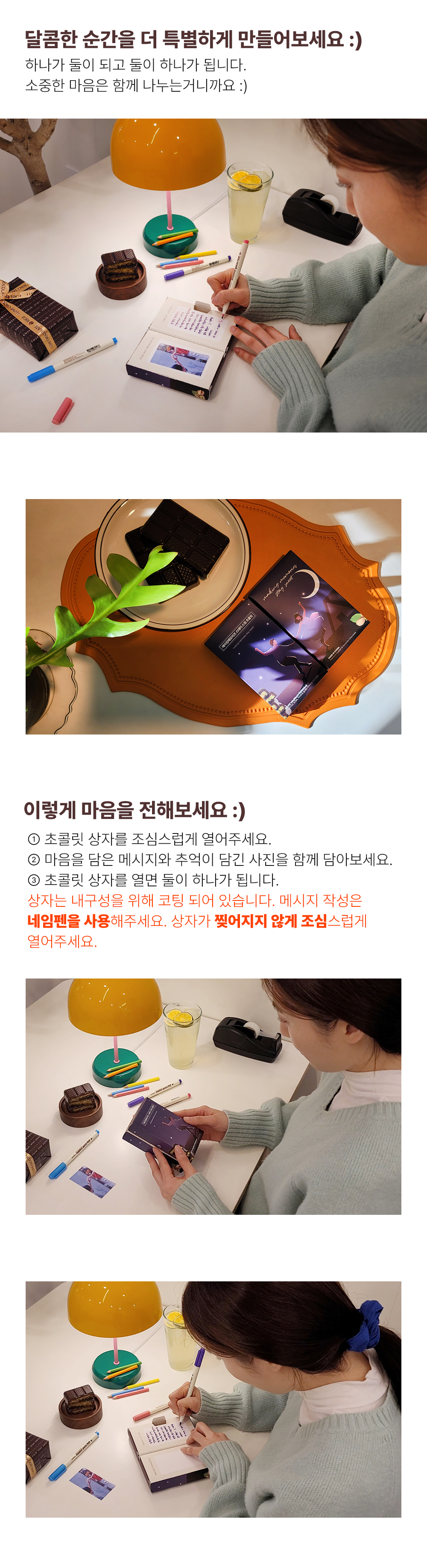 상자가 양쪽으로 나누어져 두사람의 마음을 손글씨로 적을 수 있게 박스가 제작 되었습니다.