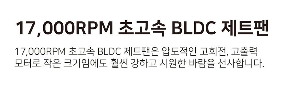 ▶17000RPM 초고속 BLDC 제트팬으로 강력한 바람