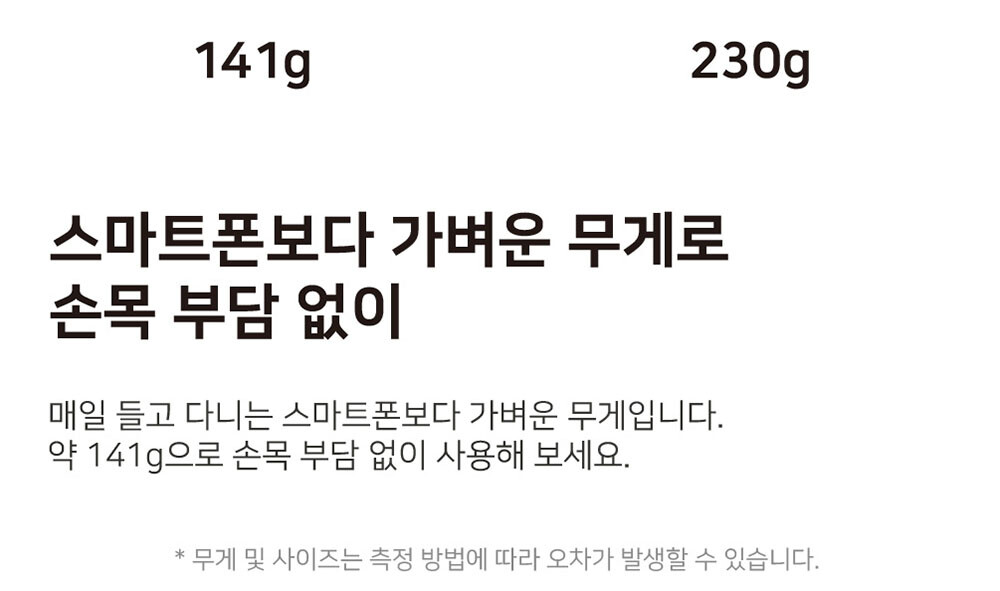 ▶스마트폰보다 가벼운 초경량으로 손목부담 ❌