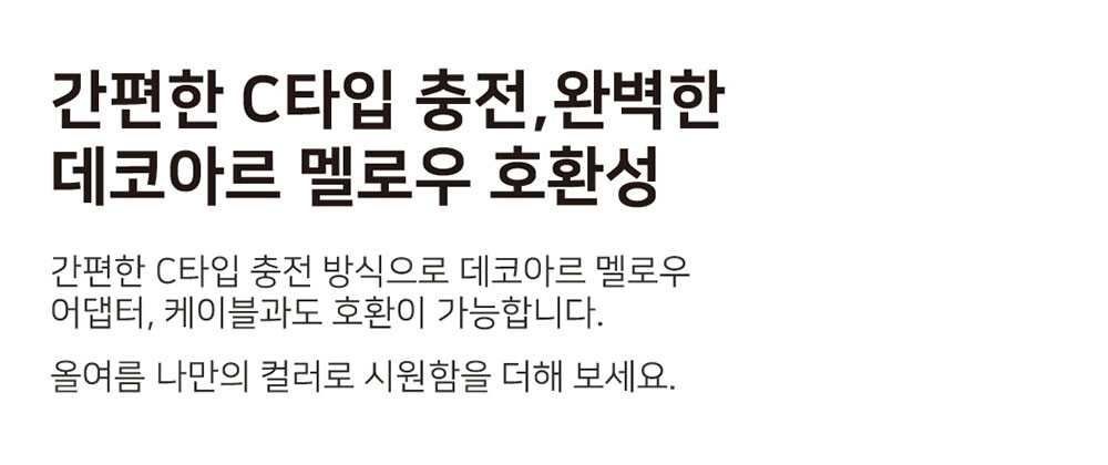 ▶C 타입 충전으로 데코아르 케이블과 호환가능