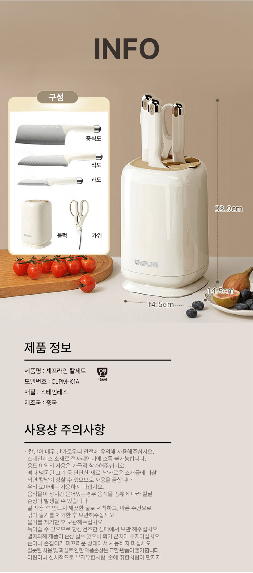 [셰프라인] 깔끔 블록 칼블럭 세트 CLPM-K1A