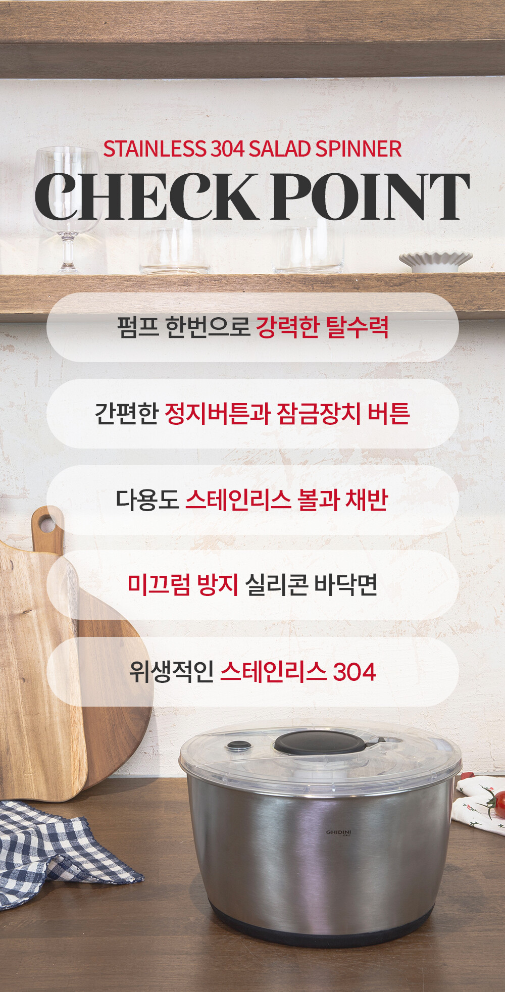 이탈리아 전통의 기디니의 스텐 304 야채탈수기의