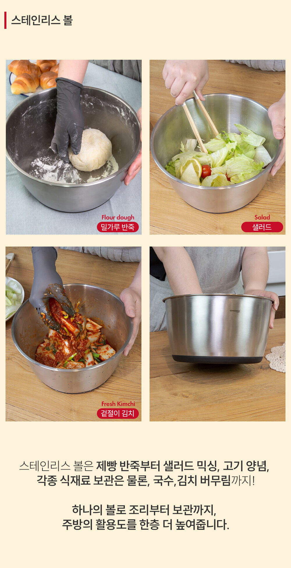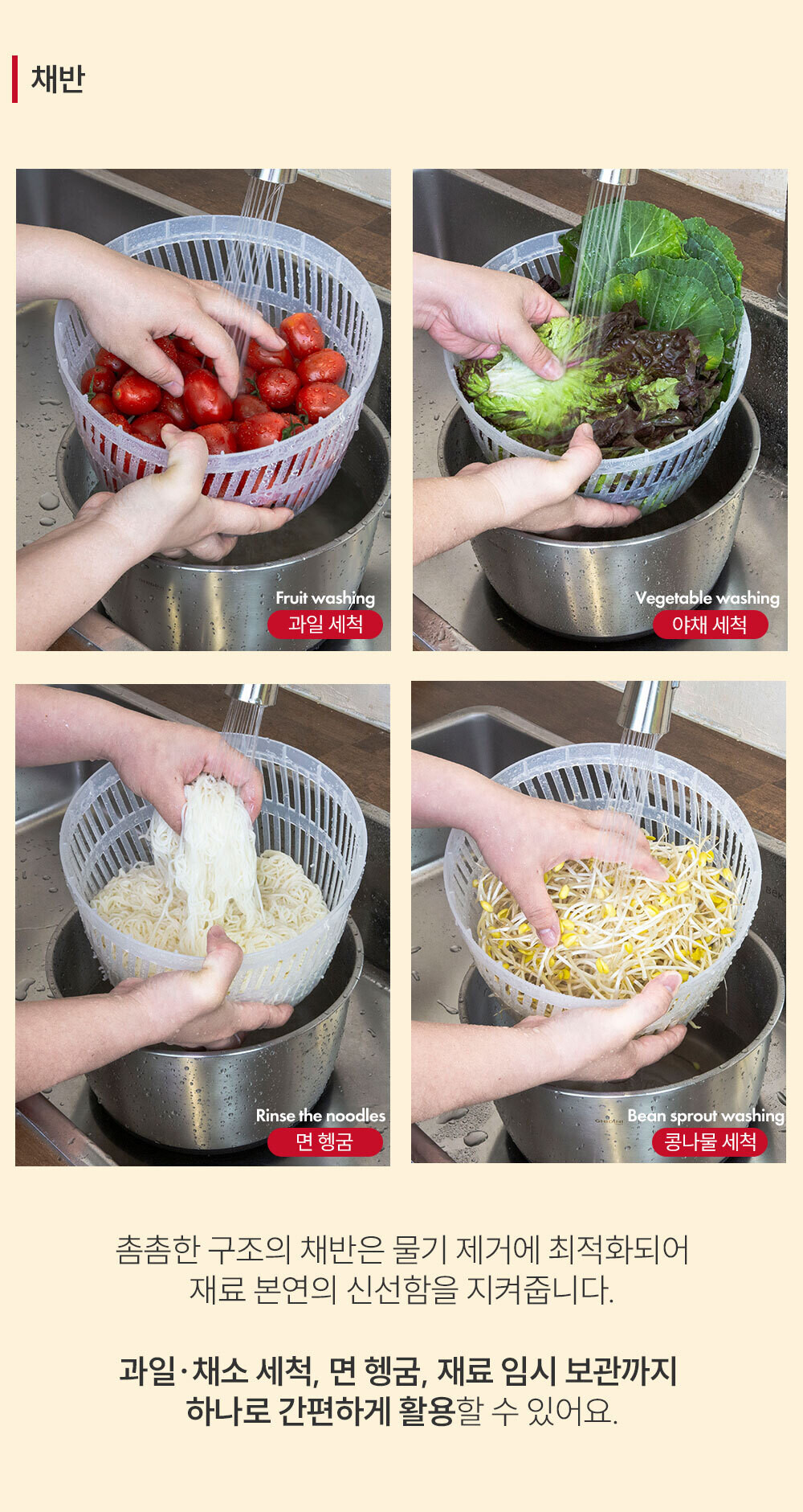▶다용도로 사용가능한 스테인리스 볼과 채반