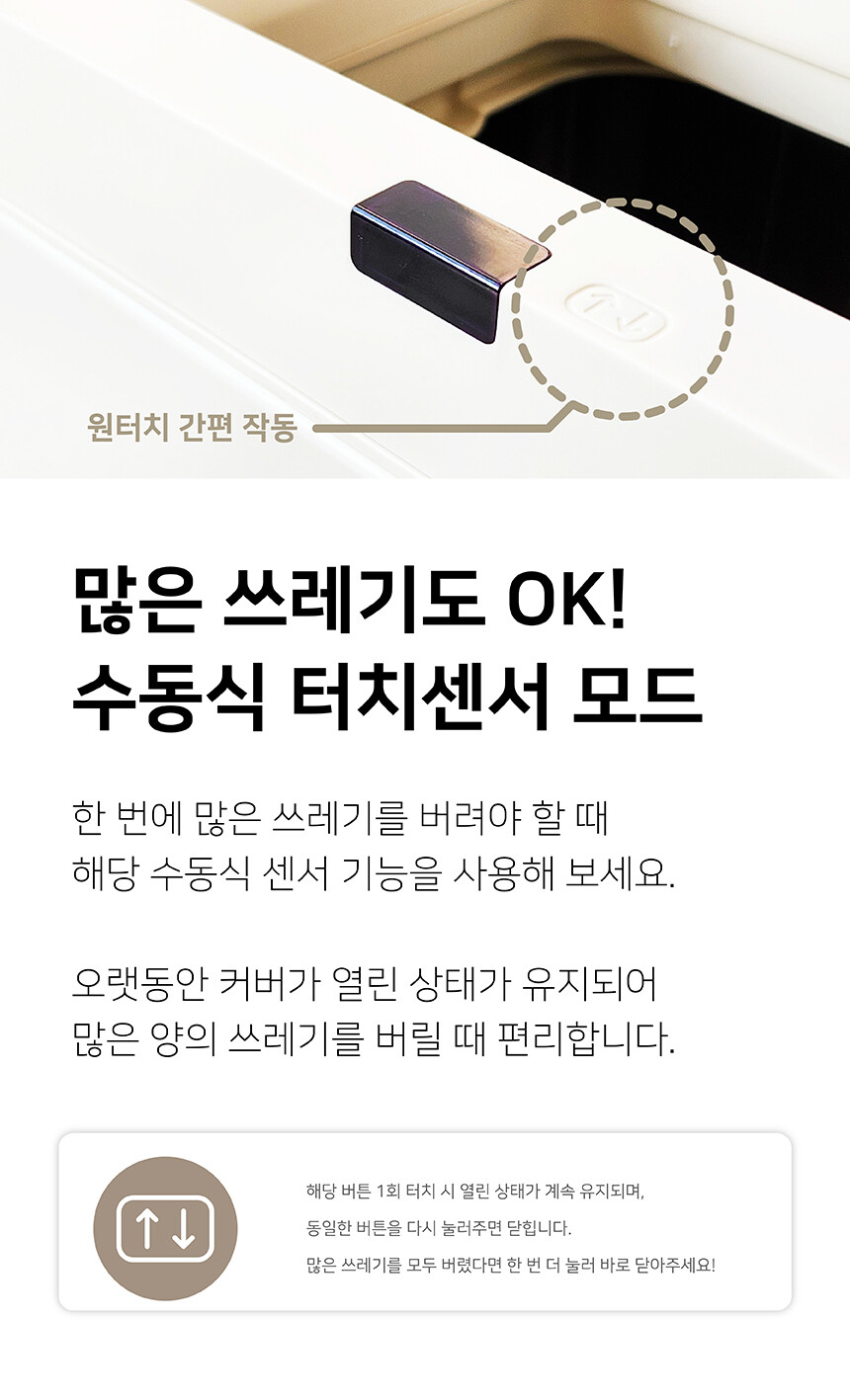 손 한번만 스치면 0.5 초 스르륵 열리는 휴지통으로