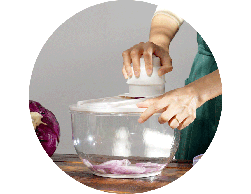 눌러주기만 하면 편하게 야채의 물기를 싹 제거해주고