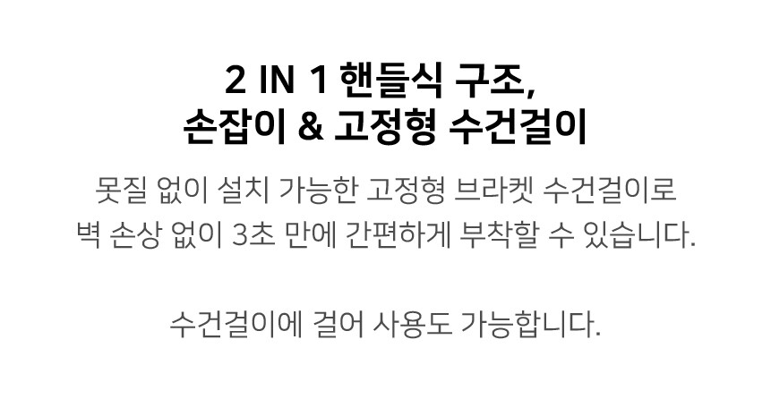 ✔️2IN1 핸들식 구조로 수건걸이로 사용가능