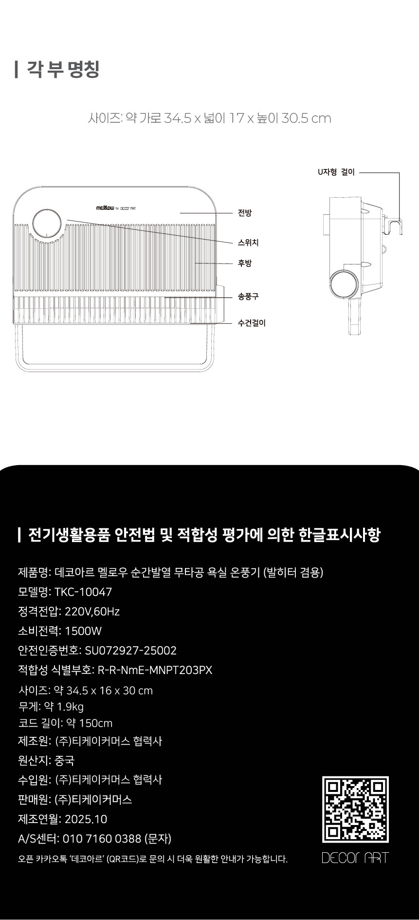 ✔️PTC 세라믹 히터로 연기,냄새환기 걱정NO!!