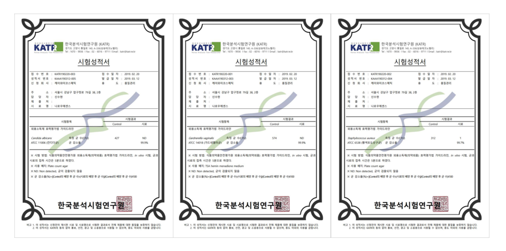 질염3대균감소시험성적서 (5분 내 99% 이상)