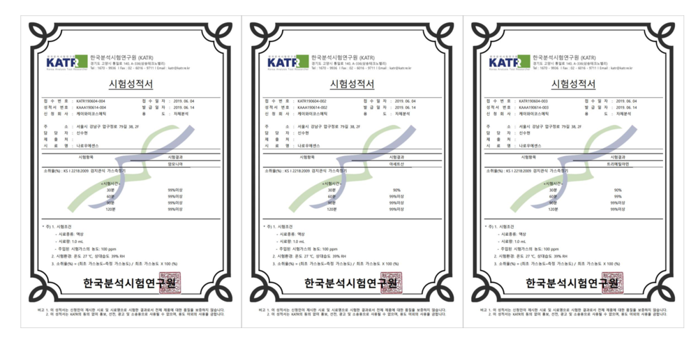 소취(냄새제거)시험성적서