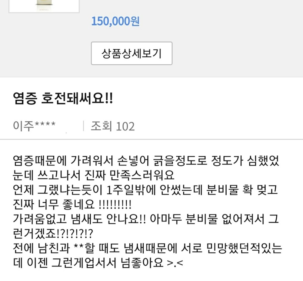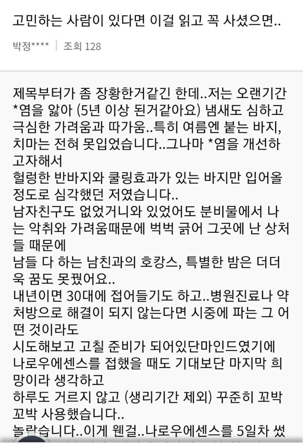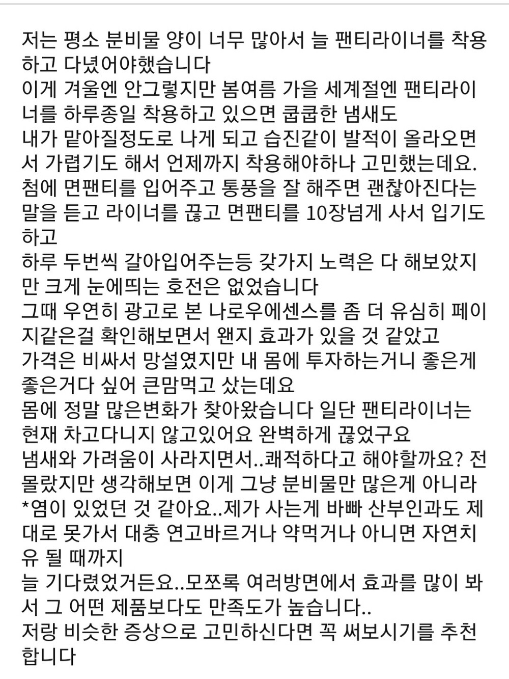 냄새 때문에 고통받는 여성분들께 추천드립니다.