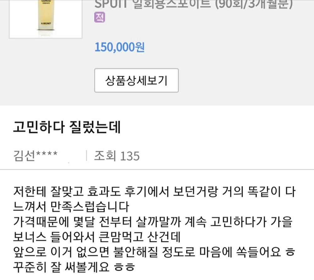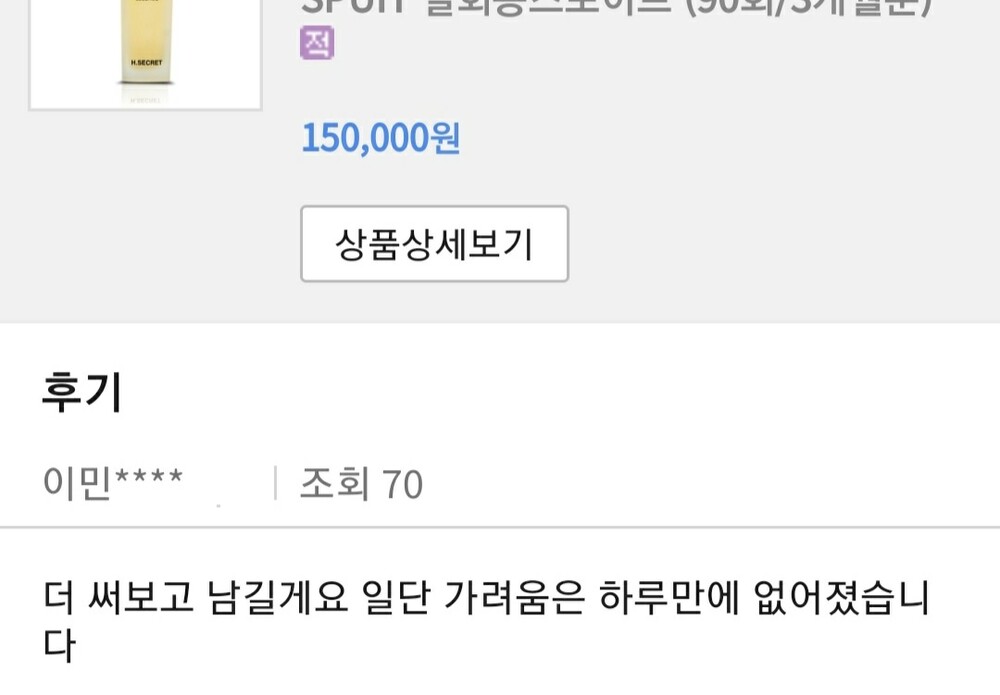 이 제품은 말보다는 결과가 더 중요한 것 같아요.