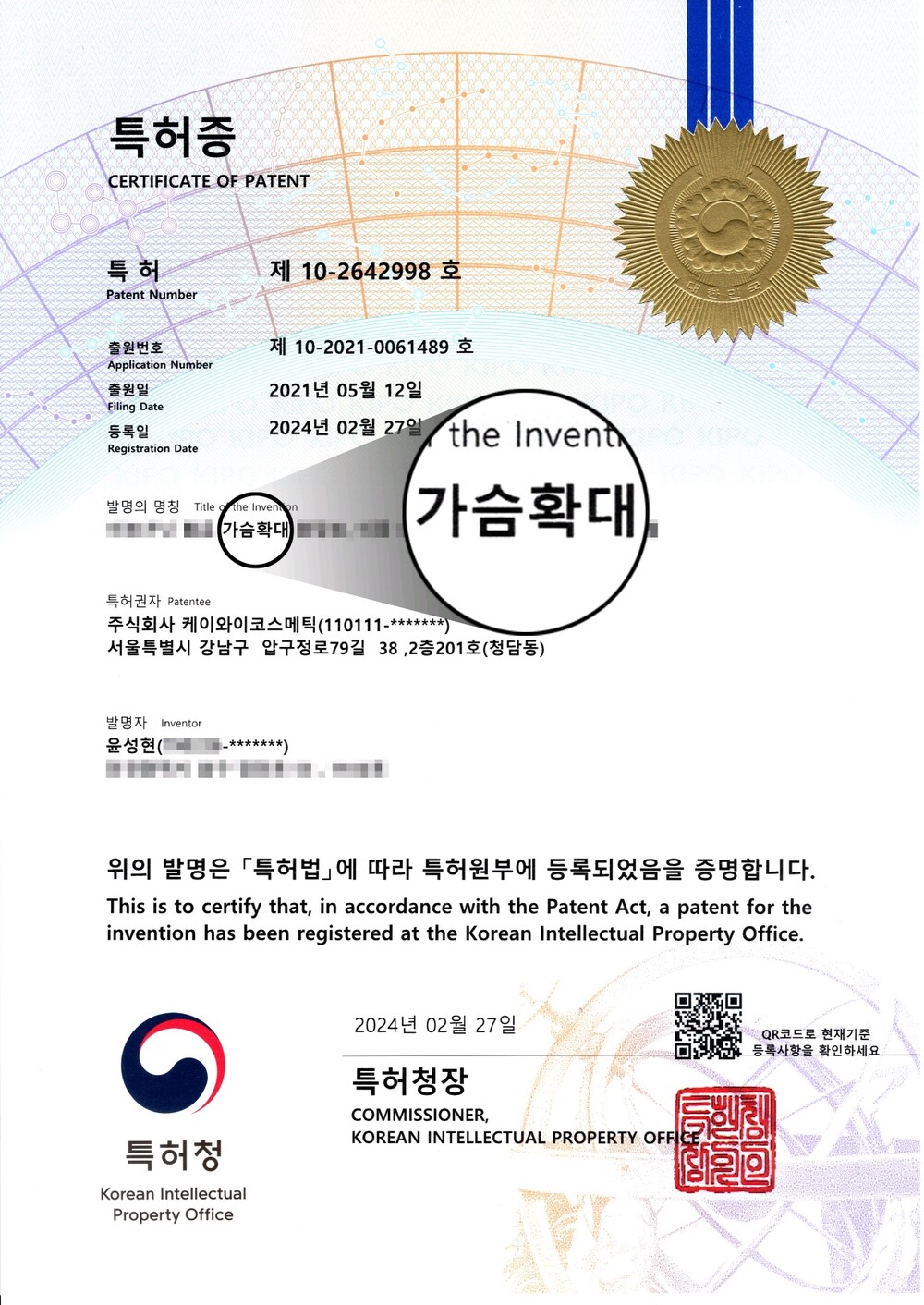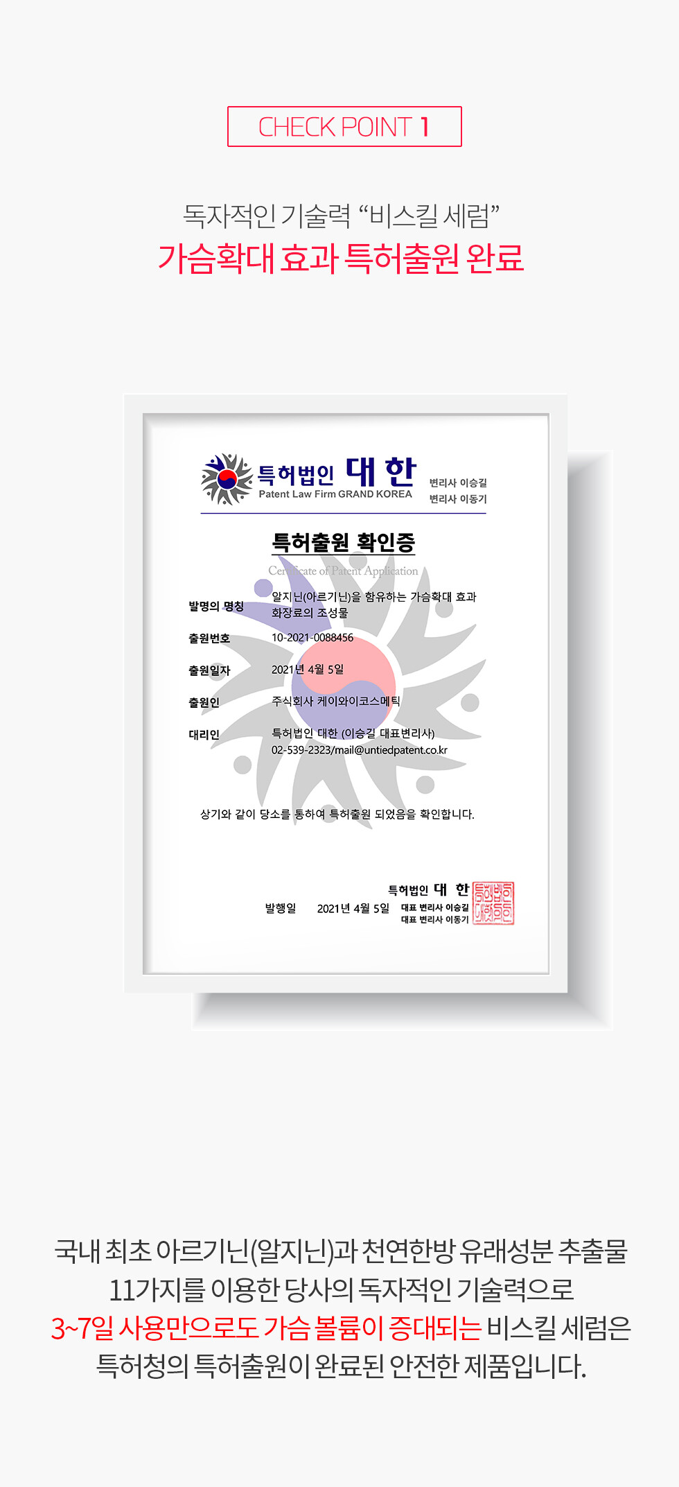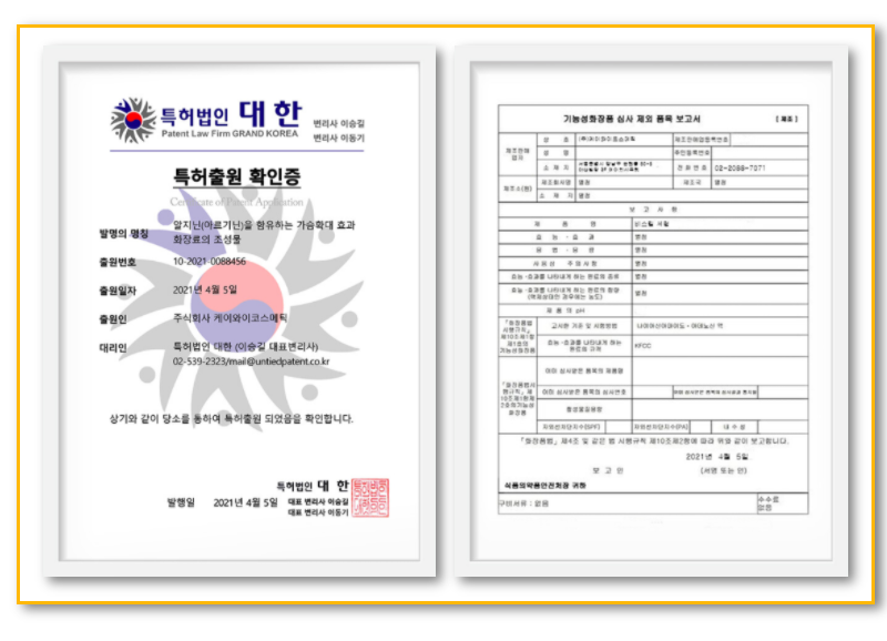 Y존 세럼에 이어 가슴세럼도 특허완료되었습니다.