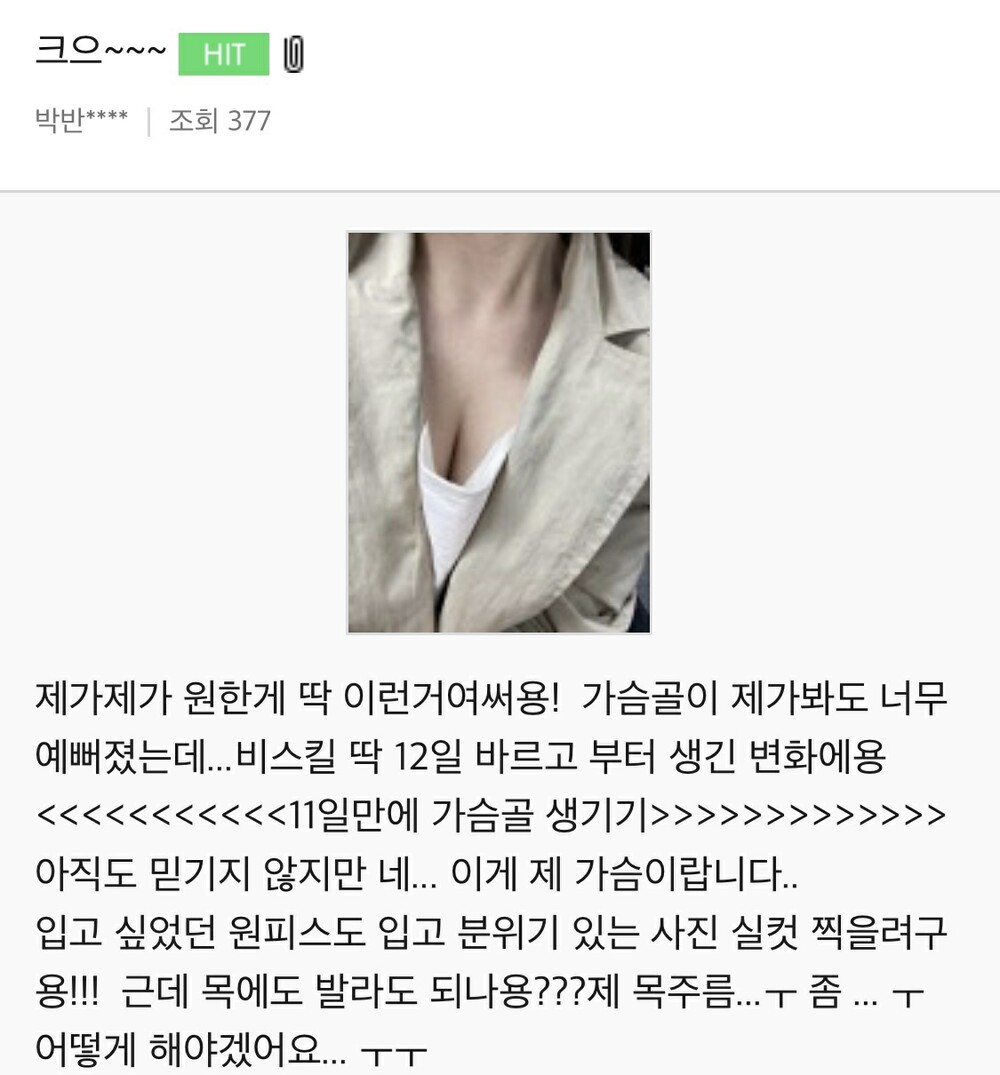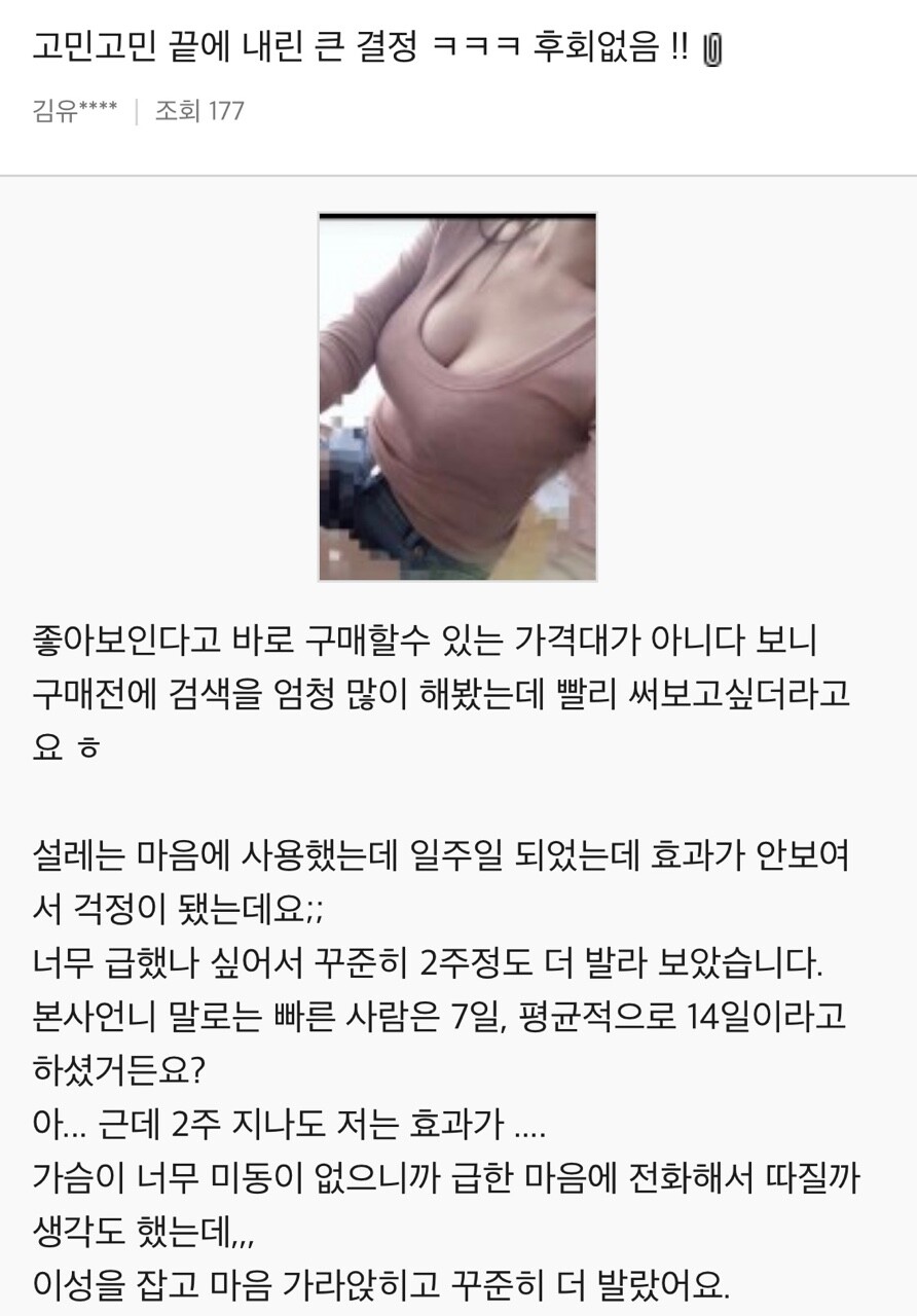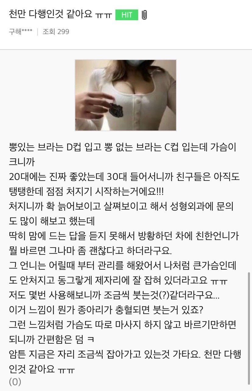 처진가슴에도 효과 있다는 거 증명합니다.