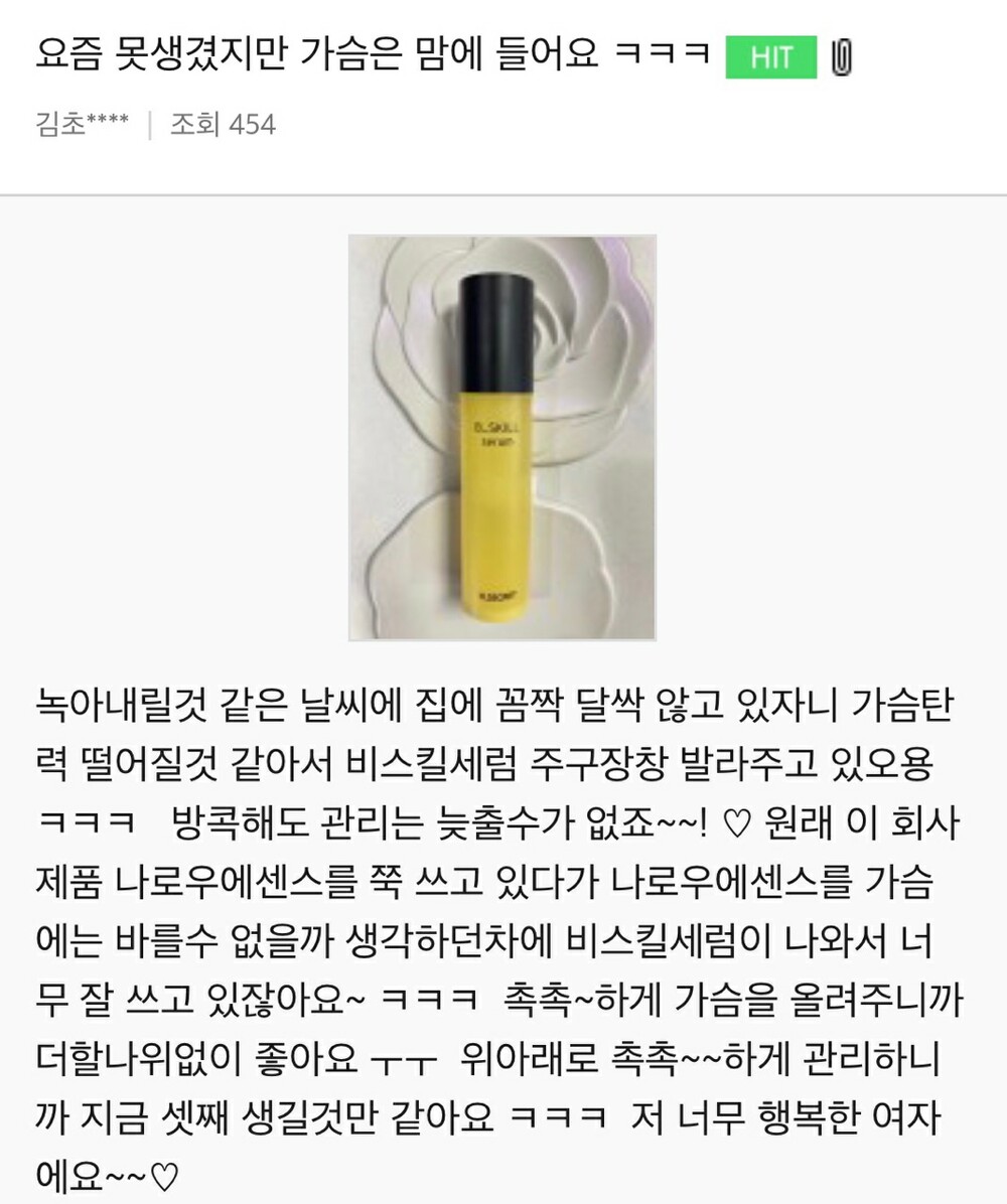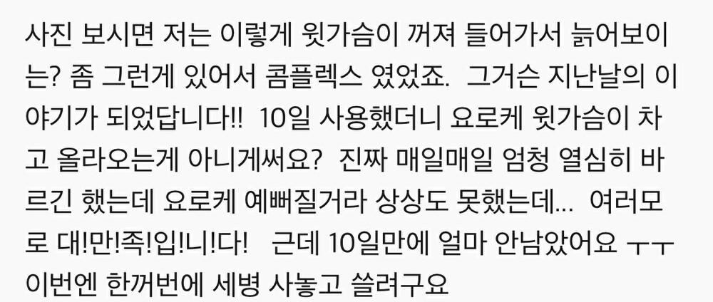기적세럼은 단순히 미혼여성뿐만 아니라 출산 후 처짐이 심하거나 탄력이 없는 울 맘들께도 완전 강추 드리는 제품이에요!!!!!!!! (아래 추가 후기들이 업뎃되었어요!! 꼭 확인해주세요!!)