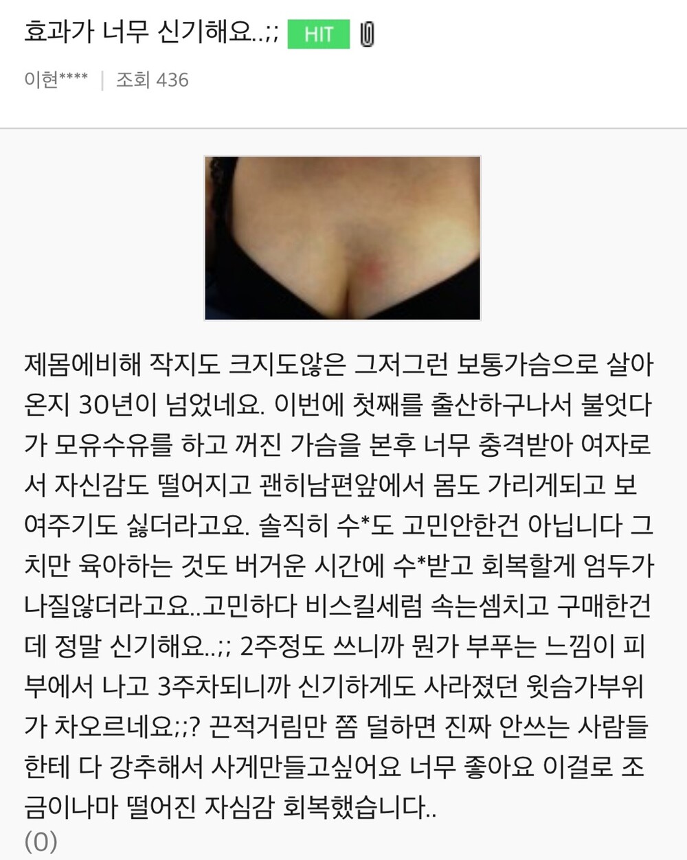 - 출산 후 펴지고 처진 가슴을 가진 분